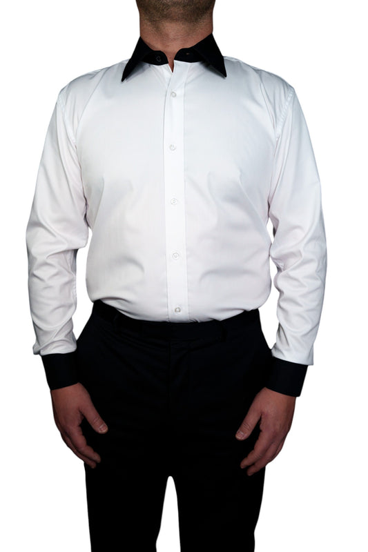 TGM WHITE PANDA TUX SHIRT – BLACK COLLAR AND CUFFS
