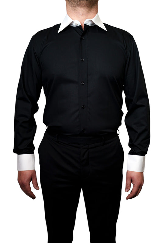TGM BLACK PANDA TUX SHIRT – WHITE COLLAR AND CUFFS